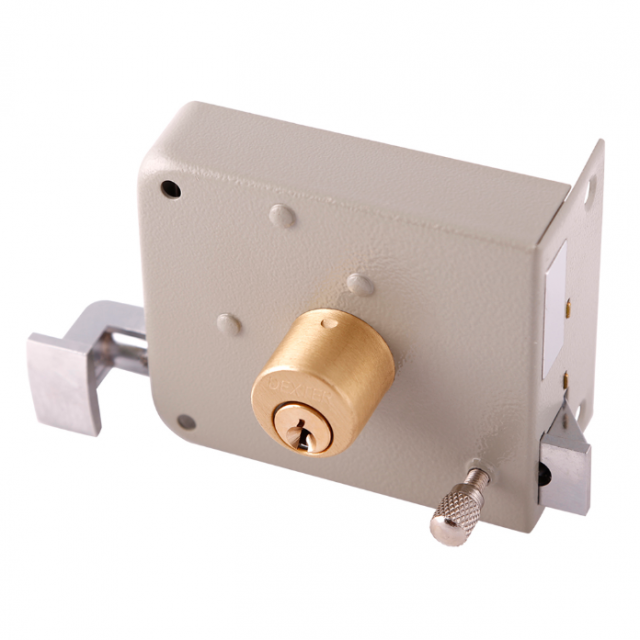 Chapa con cerrojo accionado con doble vuelta de la llave por ambos lados y picaporte de una pieza con cierre de golpe que abre con llave por el exterior y jaladera por el interior. Exclusivo botón de seguridad. ?5 pernos, dificulta la apertura con ganzúa. ?Cerradura contra standar (clasica).... Más información