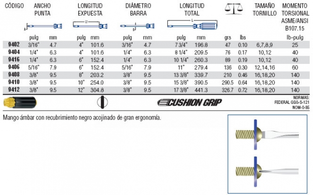 tienen una capa cusioned sobre la manija de etilo extruido para mayor comodidad y mejor agarre , por lo que se pueden aplicar más par motor incluso cuando el mango está en contacto con cualquier líquido no corrosivo . Para aplicaciones que requieren un vástago magnetizado , un magnetizador práctico / desmagnetizador está disponible .